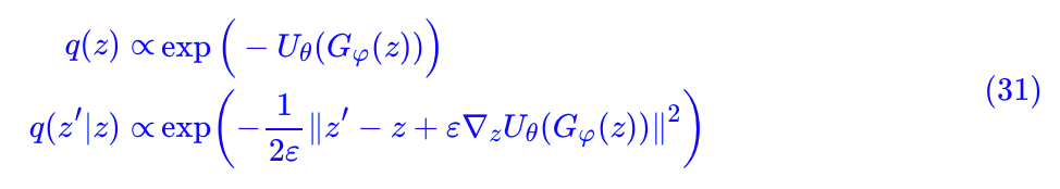 如果我们相信我们的模型,相信能量函数 Uθ(x) 和生成模型 Gφ(z) 都是有价值的,那么我们有理由相信会是一个比标准正态分布更好的 z 的分布(能生成更真实的 x 的 z 的分布,因为它将 Gφ(z) 也纳入了分布的定义中),所以从