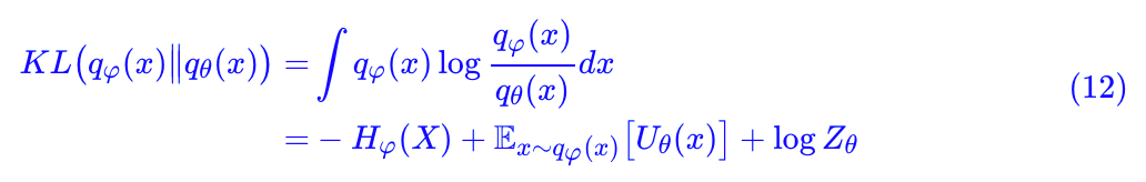 式 (11) 有效的前提是 qφ(x) 跟 qθ(x) 足够接近,也就是上式足够小,而对于固定的 qθ(x),Zθ 是一个常数,所以 φ 的优化目标是: