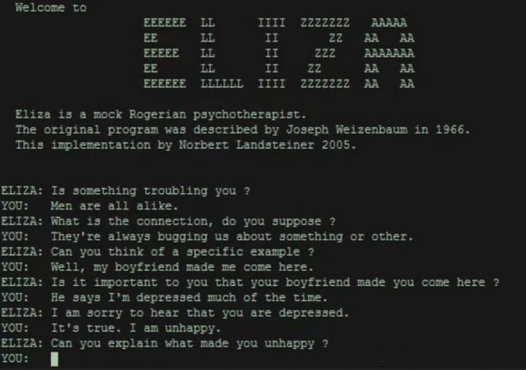据说,Weizenbaum教授将Eliza系统给同事们使用,