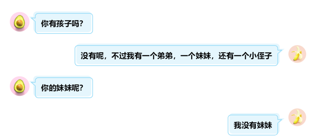 其次是人格认同的连贯性问题。同样举一个在早期测试阶段的案例:当用户问Emohaa家庭成员相关问题时,Emohaa在不同时刻回答“我有一个妹妹”和“我没有妹妹”这种信息不一致,会让用户产生困惑。如今这些问题正在迭代中改进和完善。