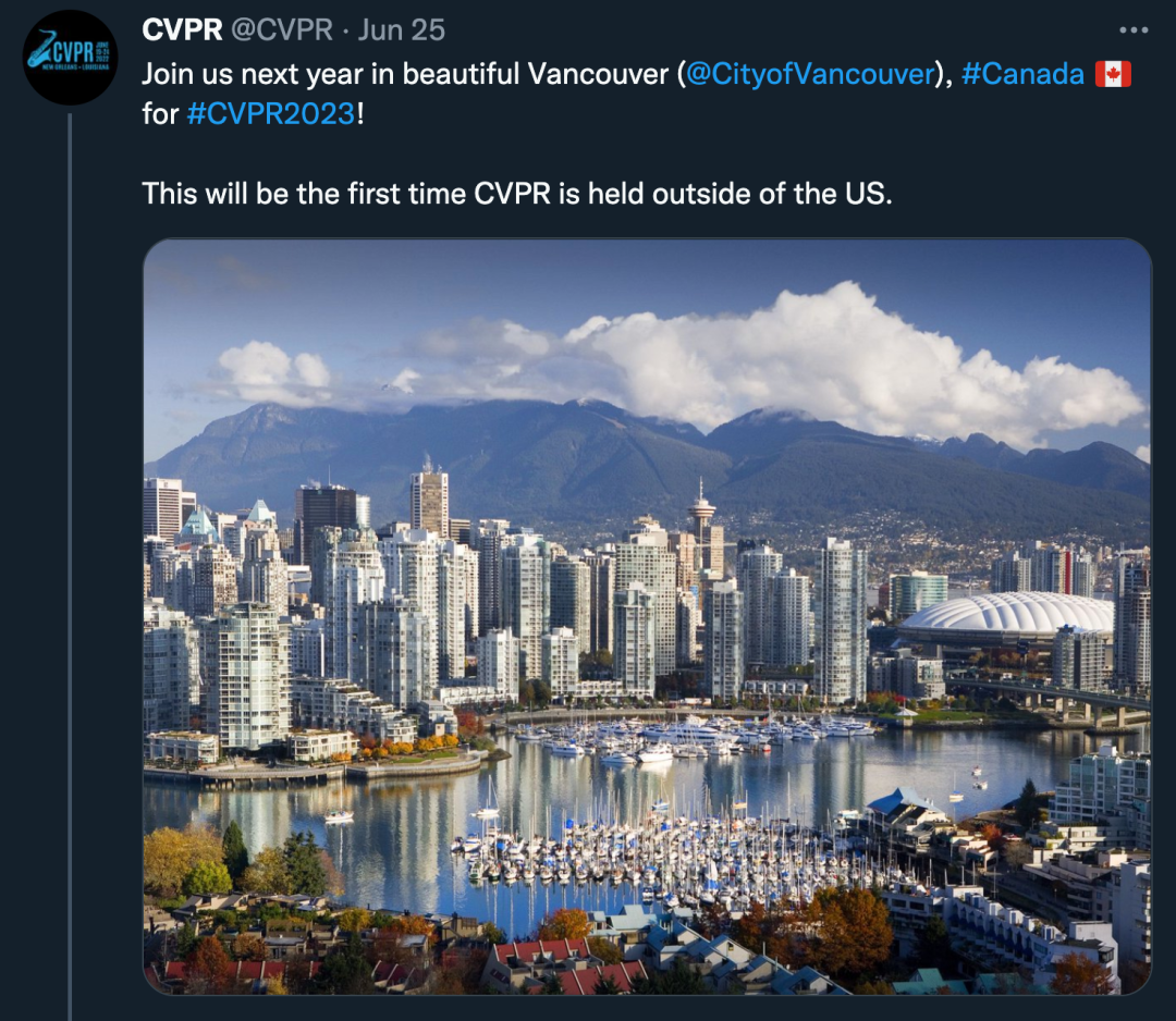最近,CVPR也官宣了2023年大会的举办地——加拿大温哥华,这是首次在美国之外的地点举办。但在疫情之下,如何保障参会者的身体健康,是更应该思考的问题。