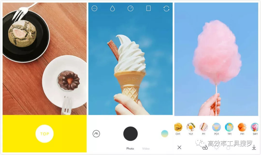 它支持30多款专滤镜,美味,香甜,烧烤,浪漫,新鲜等等。除了美食滤镜,它还带有简单的光圈,曝光补偿功能,让食物更加生动。