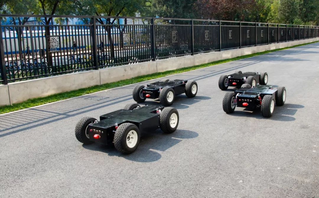 基于对技术的深刻理解和把握,团队创造性的提出了“通用化全线控底盘+订制化功能上装”的无人车研发模式,把无人车的整车执行机构和控制系统都集成封装在一个高度集成化的全线控底盘当中,搭载自主研发的控制算法,开放通讯协议,用团队自己的话说,是“让无人车开发像搭积木一样容易”。在2018年5月4日,在2018年北京国际车展上,团队推出了全国首款全线控无人车通用底盘。