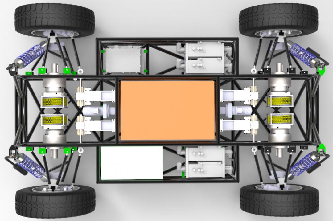 团队打造的四轮独立驱动、四轮独立转向的超级军用无人车底盘