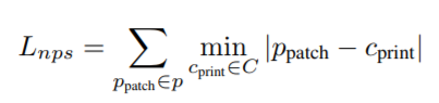 其中 ppatch 是贴纸中的一个像素,而 cprint 是一组可打印颜色 C 中的颜色。这种损失有利于确保图像中的颜色与可打印颜色集中的颜色密切相关。