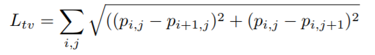 Ltv:图像总变化。该损失函数损失确保优化器支持平滑颜色过渡的图像并防止图像噪声。可以由 P 计算 Ltv: