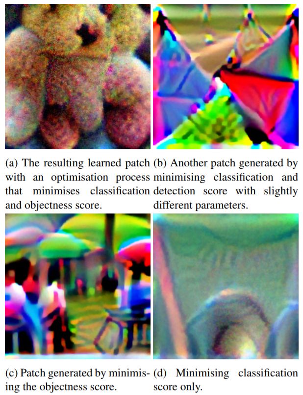 他们发表了题为 Fooling automated surveillance cameras: adversarial patches to attack person detection 的论文,并公布了用于生成图像补丁的源代码。