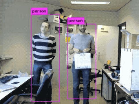 如下面的 demo 所示,使用 YOLOv2 检测拍摄的录像,画面中人、椅子、桌子等都被准确地检测出来,但只要拿上这块 “补丁”,系统就无法检测到人。