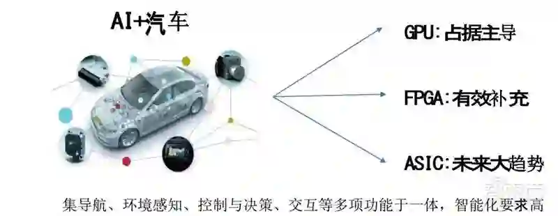在汽车主控芯片领域,GPU 仍将保持通用汽车主控芯片的主流地位,FPGA作为有效补充,ASIC 将成终极方向。当前人工智能及智能驾驶算法尚未定型,GPU 作为通用加速器,预计仍将在相当长一段时间内保持其汽车主控芯片的主流地位;FPGA 作为硬件加速器,料将成为 GPU 的有效补充;将来如果全部或部分智能驾驶算法得以固化,ASIC 将成为最优性价比的终极选择。