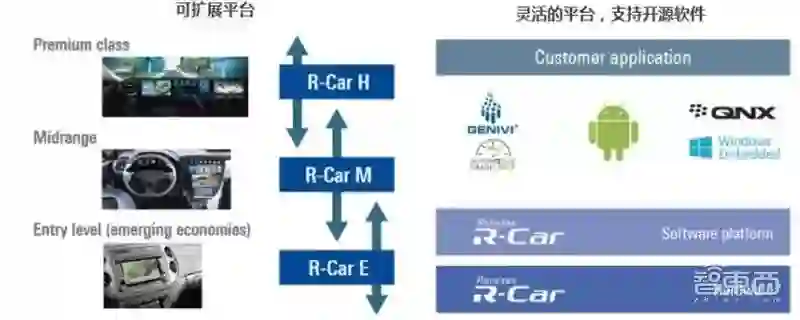 瑞萨:多品类车载 MCU 和 SoC,R-Car 平台支持 L4 级自动驾驶。
