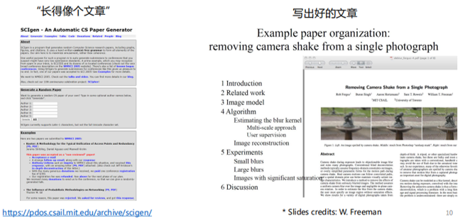 2005年,MIT几位学生写了一个程序,运用特定写作规则生成了几篇文章进行投稿(如下图左边),居然投中了几篇“水会”。虽然这是一个极端现象,但也从侧面说明写论文至少要遵循一些最基本的规范,首先要“长得像一篇文章”,包括正确的语法、图表公式的合理应用、参考文献的规范性等。