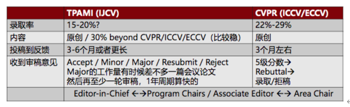 最后,我再介绍一些扩期刊方面的注意事项。在计算机视觉方向,有TPAMI和IJCV两本顶级的期刊。总体上而言,这两本期刊都会接收已经在CVPR等顶级会议发表,并且在原论文的基础上做30%以上扩展的论文。这里的扩展并不仅仅指扩展篇幅(多些一些Related Work和技术细节描述)和实验(多加一些结果)等,更重要的是对于技术的更深入分析和思考,甚至能提出一些有意义的改进。当然这些期刊也会接收完全原创的论文,只是审稿人一般也会有更高的期待(至少达到优秀的顶级会议论文水平,而且问题分析很透彻)。期刊论文处理周期是比较长的,因为需要经历多轮的审稿,直到所有审稿人都认为他们提出的所有问题都被解决了。有时一篇论文到了Minor Revision的阶段,由于某个审稿人的意见有变(多数是因为作者没能最终说服他)也会导致论文挂掉。所以从这个角度来说,期刊文章是经得起锤炼的,是对一个问题更深入的探讨。最后作为IJCV的编委,做一个小广告,目前IJCV正在努力加速审稿周期,欢迎大家投稿。