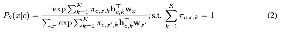 使用向量门控,利用公式 (2) 获得下一个 token 的概率。