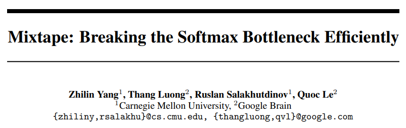 2017 年,杨植麟等人提出一种解决 Softmax 瓶颈的简单有效的方法——Mixture of Softmaxes(MoS)。但该方法成本高昂,于是最近杨植麟等人再次瞄准 softmax 瓶颈问题,提出兼顾表达能力和高效性的新方法 Mixtape。
