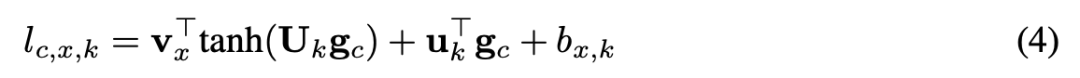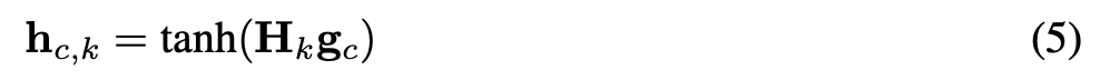 给出最后一层的隐藏状态 g_c,使用公式 (5) 计算语境嵌入 h_c,k;