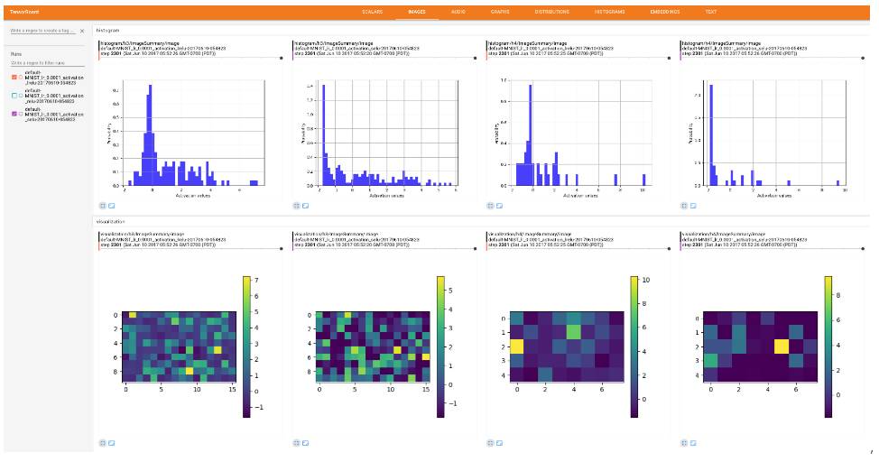 为了用实验证明所提出的激励的有效性,一个包含三个卷积层的卷积神经网络(也包括三个完全连接层——fully connected layers)在 MNIST, SVHN 和 CIFAR10 数据集上进行训练,来进行图像分类。为了克服 Tensorboard 显示内容的一些限制,我们引入了绘图库 Tensorflow Plot 来弥补 Python 绘图库和 Tensorboard 间的差距。以下是一些例子。
