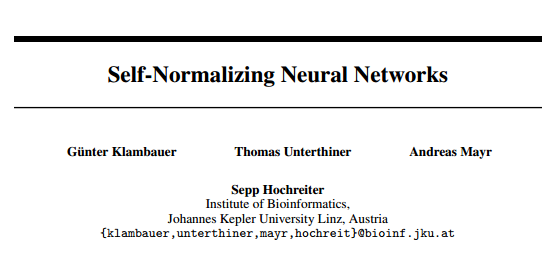 Self-Normalizing Neural Networks by Klambauer et. al