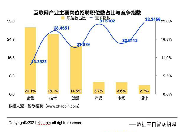 从智联招聘发布的《2021年互联网产业求职指南》来看,运营岗的招聘需求量之高,位居互联网产业前3名。