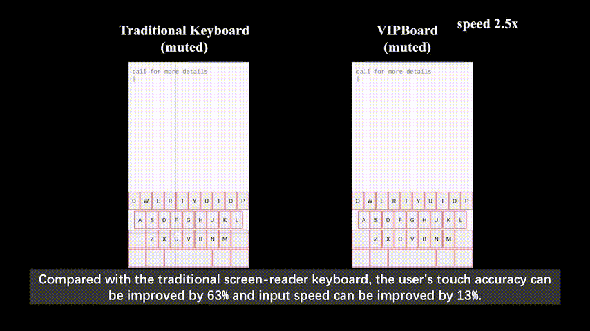 经过模型反复测试,可以有效解决视障用户打字落点不准确的问题,大幅提升了视障群体的输入效率。