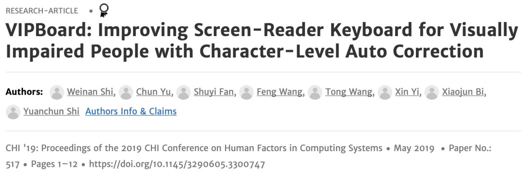 而团队的相关工作也发表在了人机交互领域顶级学术会议——国际计算机学会人机交互大会(The ACM CHI Conference on Human Factors in Computing Systems 2019)上,并获得荣誉论文奖。