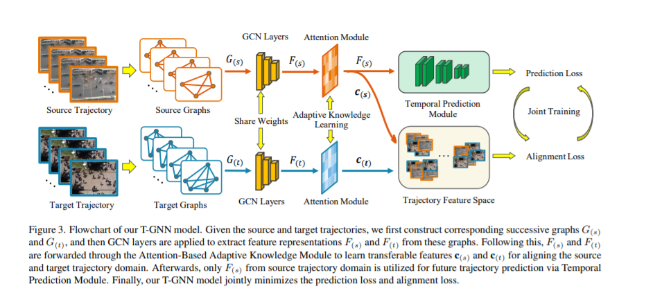 行人轨迹预测是自动驾驶和机器人等广泛的人工智能应用的重要组成部分。现有的方法通常假设训练和测试动作遵循相同的模式,而忽略了潜在的分布差异(如购物中心和街道)。此问题将不可避免地导致性能下降。为了解决这一问题,我们提出了一种新的可迁移图神经网络(T-GNN)框架,该框架在一个统一的框架内联合进行轨迹预测和域对齐。具体地说,我们提出了一个领域不变的GNN来研究结构运动知识,在结构运动知识中减少了领域特定知识。在此基础上,提出了一种基于注意力的自适应知识学习模块,探讨了知识迁移的细粒度个体层面特征表示方法。通过这种方法,可以更好地缓解不同轨迹域之间的差异。我们设计了更具挑战性的实际弹道预测实验,实验结果验证了所提模型的优越性能。据我们所知,我们的工作是填补不同领域中实际行人轨迹预测的基准和技术空白的先锋。