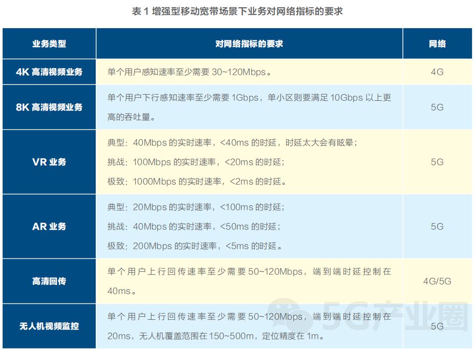 增强型移动宽带将是 5G 网络最早实现商用的场景,同时也是最为核心的场景,它将满足个人用户对高数据速率、高移动性的业务需求。