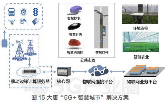 大唐结合自身在物联网领域的实践经验,立足智慧城市建设,提出了“5G+ 智慧城市”解决方案,方案以 NB-IoT/eMTC 等蜂窝物联网技术为基础,依托于大唐物联网平台 eNET,将底层感知设备与城市运营管理中心互联,对城市智慧化、城市整体管理与运营效率的提升产生积极效应。