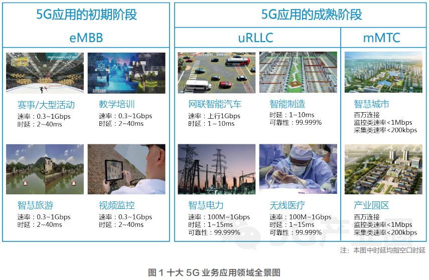 基于 5G 技术的业务应用,既面向 4G 网络演进的增强移动宽带场景,又支撑新兴的低功耗大连接、低时延高可靠场景,必将成为未来移动通信市场的重要增长点。