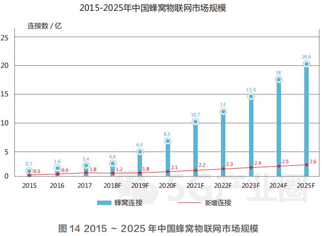 预计到 2025 年,我国蜂窝物联网连接数将达20.6亿,届时物联网应用将会渗透到人们的居住、工作、休闲、交通等各个领域,典型应用场景包括基于园区的智慧安防、资产 / 人员管理、楼宇管理等,以及基于城市的市政管理、环境管理、物流、农业等众多领域。