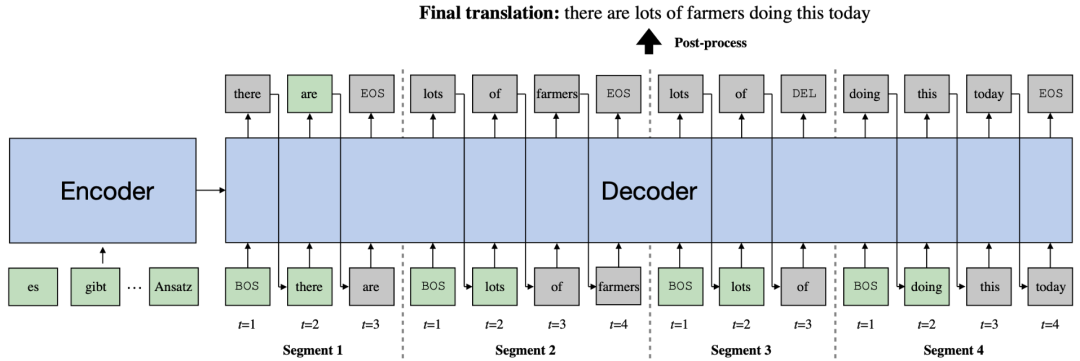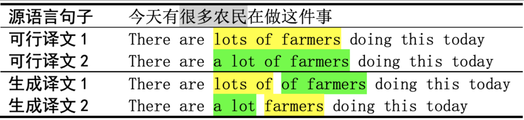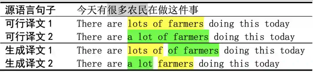 1、对于每个片段,其开头几个词的选择可以更加灵活。以图2为例,对于第2个片段(Segment 2),如果模型将其第一个词选为“of”而不是“lots”,那么模型只需在第1个片段(Segment 1)的结尾处多生成出词“lots”即可避免漏译错误。同理,如果第2个片段的第1个词被选择为“are”,那么第1个片段只需不生成“are”即可避免重复翻译错误。