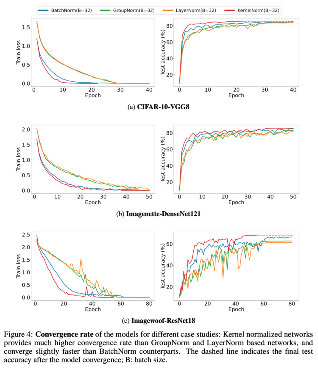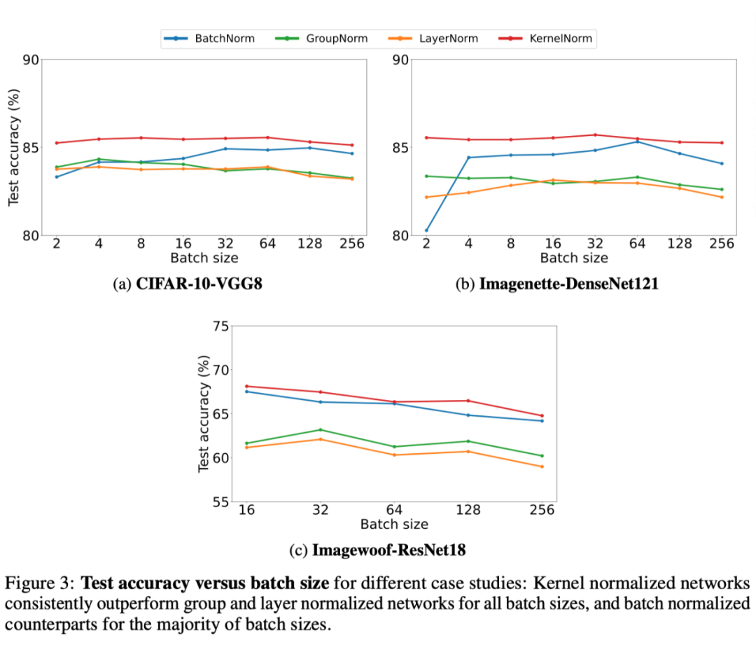 作者实现了与最先进的 CNN(如 ResNet 和DenseNet)相对应的 KNConvNets,同时放弃了 BatchNorm 层。通过大量实验,作者表明,KNConvNet 在准确性和收敛速度方面始终优于 BatchNorm,GroupNorm 和 LayerNorm,同时保持了有竞争力的计算效率。