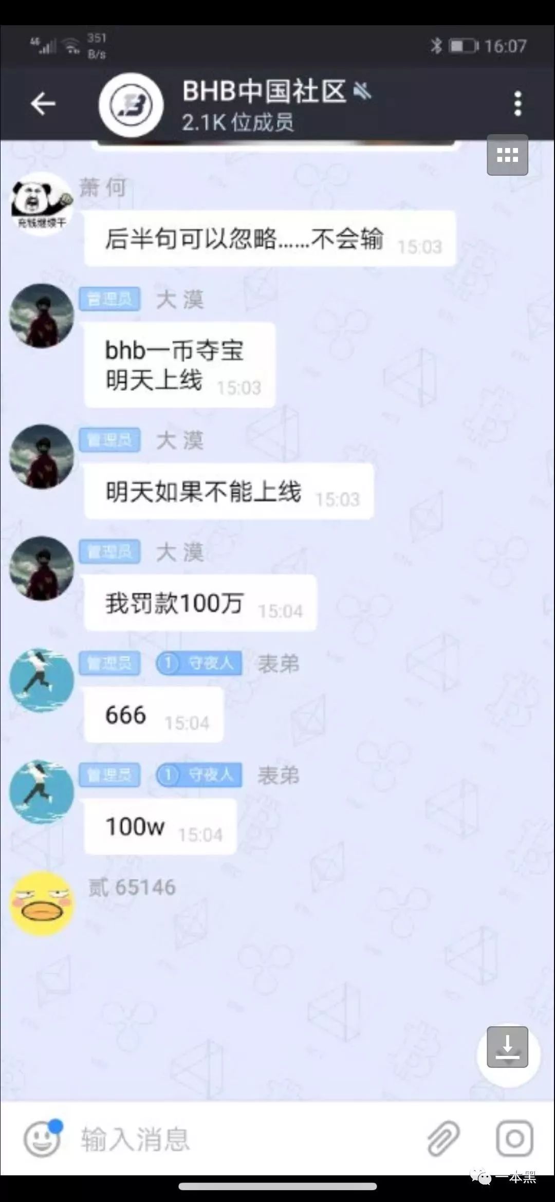 BHB的交流群里称即刻购买,只需一个月就能实现本金翻倍。如今他们的博彩业务:币多宝、时时彩、炸金花、捕鱼、斗地主即将上线。影视、医疗、娱乐等领域也正在积极筹备中。