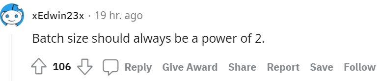 除此以外,有网友总结了批大小应该是 2 的幂次方。