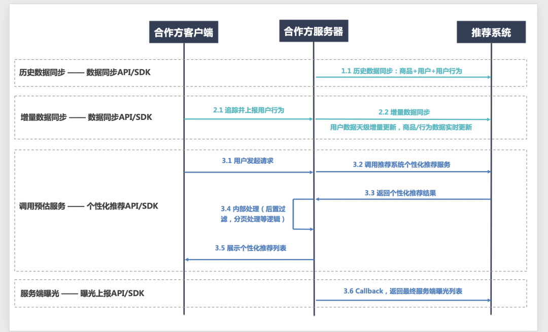 其中如何接入对开发者来说至关重要,拿「智能推荐」来说,在文档中心有着详细的流程及指南。简单来讲,包含了数据同步及智能推荐服务接入两部分。在数据同步方面,支持通过 API、SDK 或公有云对象存储进行同步;而在服务接入方面,支持 API 和 SDK 两种方式,SDK 支持 Java 语言,相较而言不仅速度更快而且性能更优。
