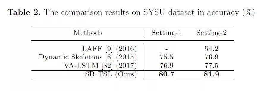 ② 在SYSU 3D Human-Object Interaction dataset 上的实验结果: