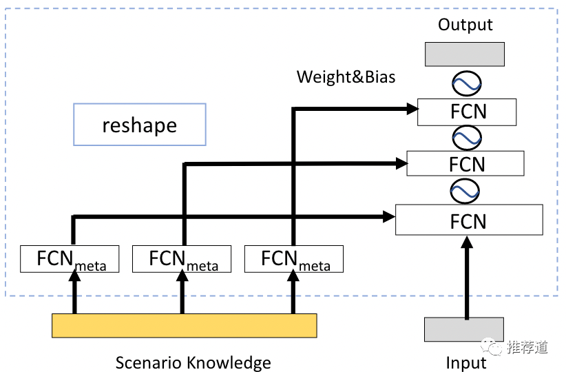 首先,M2M实现了通用模块Meta Unit。这个模块根据“场景”特征,动态生成权重,再reshape成一个MLP。