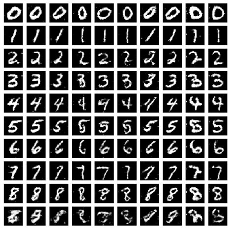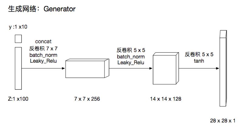 下面展示一个cDCGAN的例子(前面帖子中写过的)
