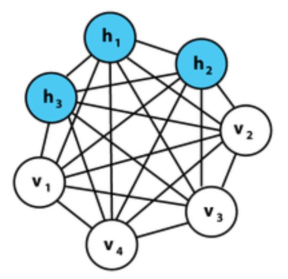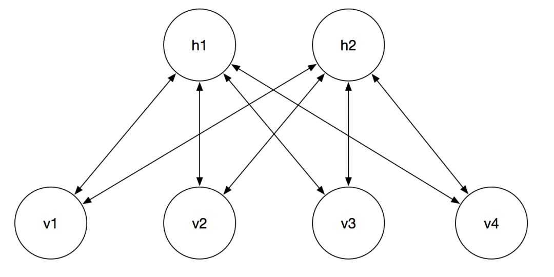 最简单的来说就是加入了限制,这个限制就是将完全图变成了二分图。即由一个显层和一个隐层构成,显层与隐层的神经元之间为双向全连接。