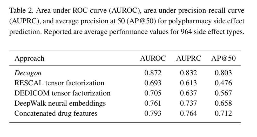 本文来自斯坦福大学,论文将 Graph Convolution Neural Network 应用于药物副作用研究中。本文提出了一种通用的多关联链路预测方法——Decagon,该方法可以应用于任何多模态网络中,能够处理大量边缘类型的多模态网络。