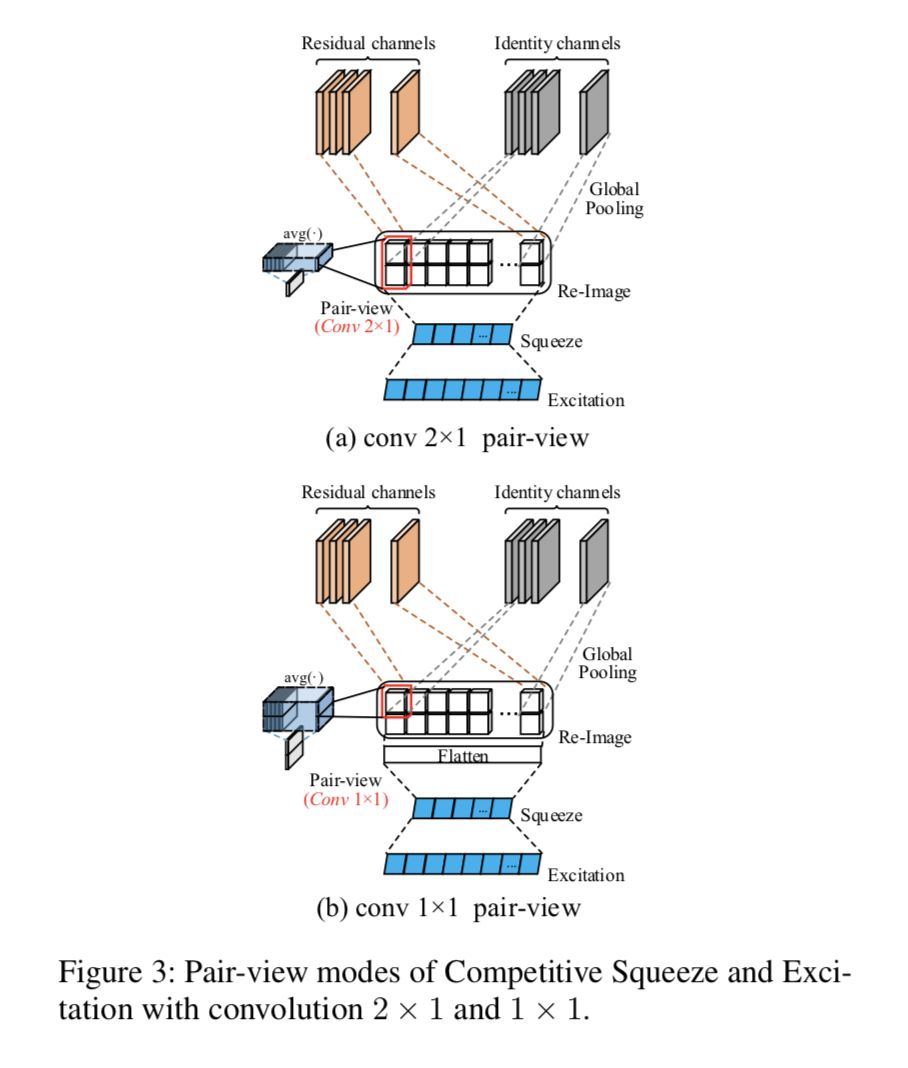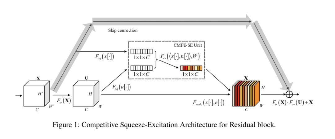 本文来自华南理工大学,论文在 SE-Net(Squeeze-Excitation)的基础上,根据已有的残差映射作为恒等映射的一种补充建模的论点,提出了残差和恒等流进行竞争建模共同决定 channel-wise attention 输出的改进,使得恒等流能自主参与对自身补充的权重调控。