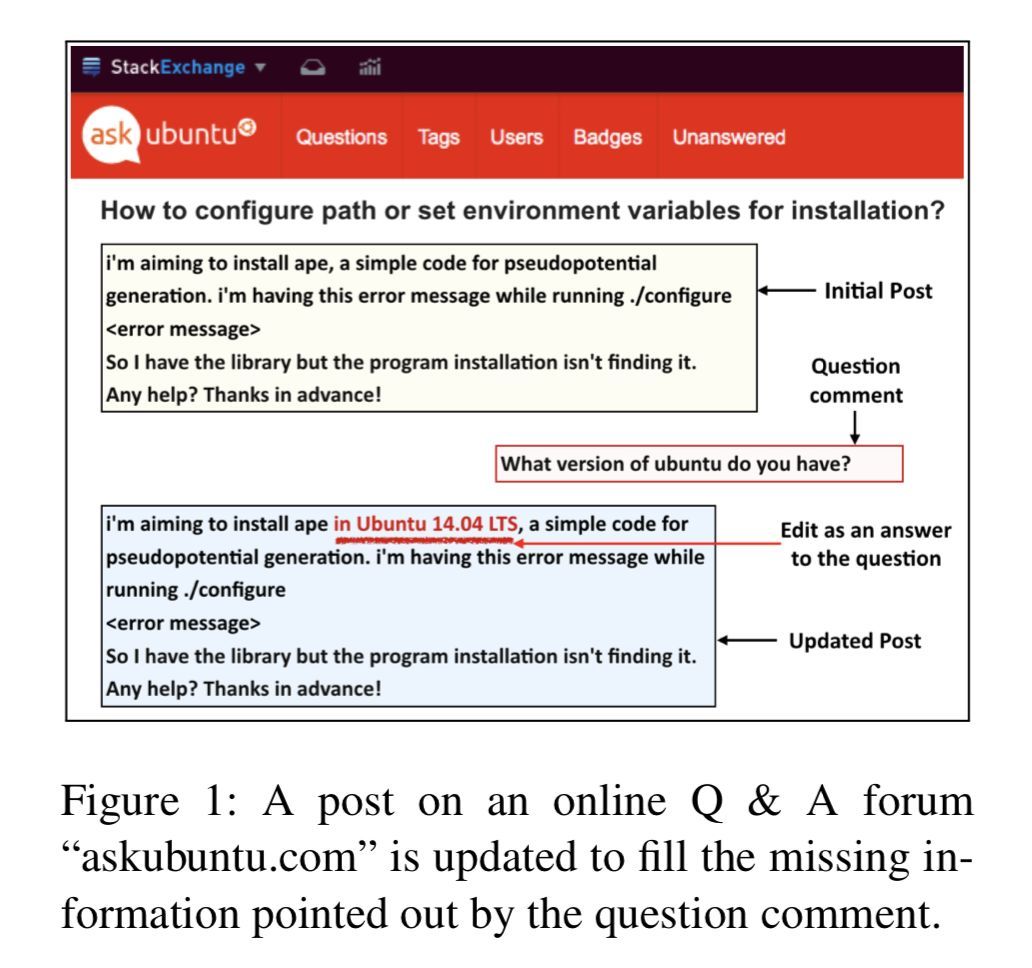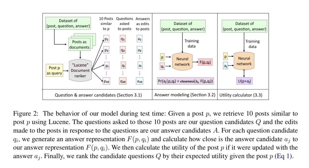本文是马里兰大学发表于 ACL 2018 的工作,论文基于完全信息期望值(EVPI,expected value with perfect information)架构构建了一个用于解决澄清问题排序的神经网络模型,并利用问答网站“StackExchange”构建了一个新的三元组(post, question, answer)数据集,用于训练一个能根据提问者所提出的问题来给出澄清问题的模型。