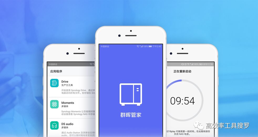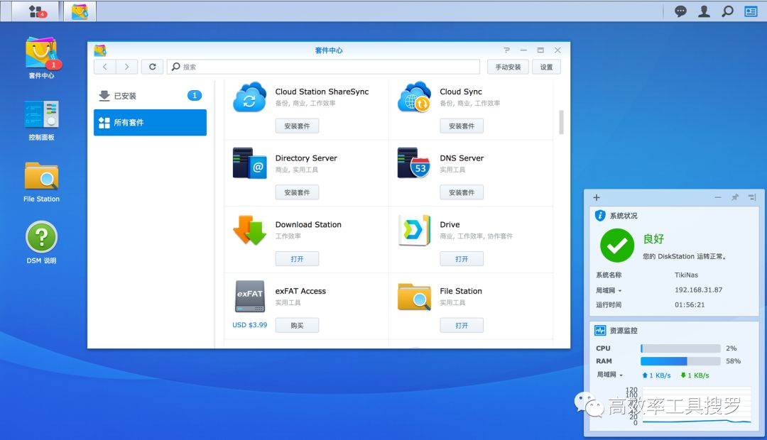 它内置很多套件,功能也是很好用啊,效率君介绍两个给大家:Drive(私人的网盘,多端同步),Moments(照片管理同步)。这两个在【群晖管家App】 里自带,下载安装后就可以直接使用了。