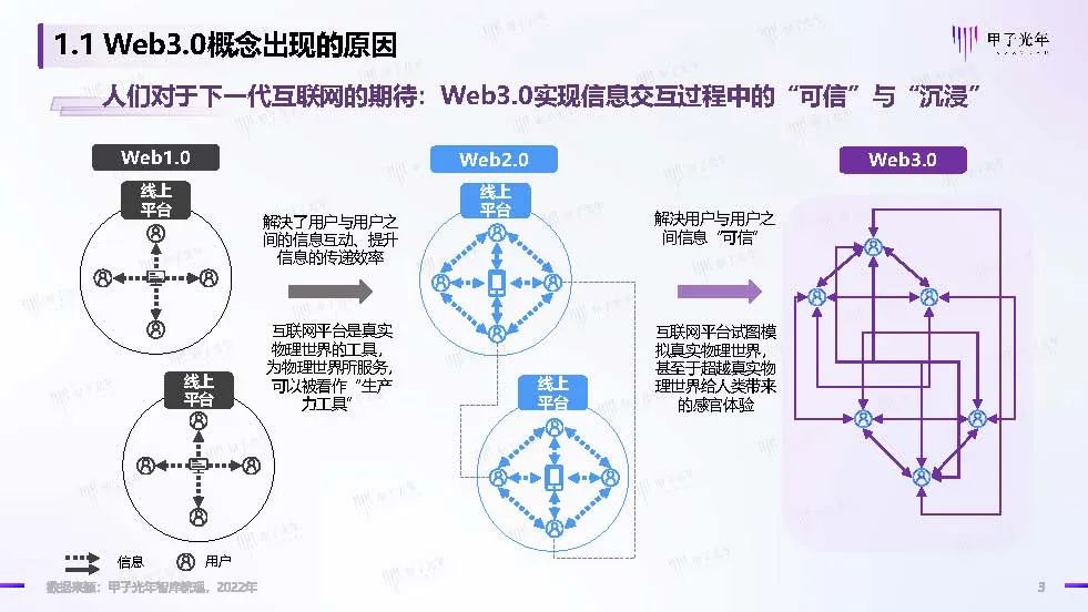当前全球互联网发展正处于从Web2.0向Web3.0时代的过渡阶段。甲子智库认为,Web3.0作为下一代互联网形式,将具有颠覆当下主流互联网商业模式的重要意义。基于此,甲子智库重磅推出《Web3.0概念下的场景生态简析——信息聚联与价值共享的用户互联网》。