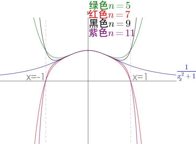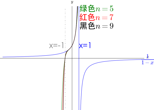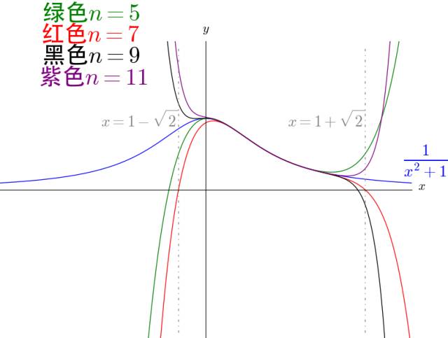 从图中可以看到,泰勒级数在 收敛。超出这个范围,泰勒级数的图像就远离原函数的图像。