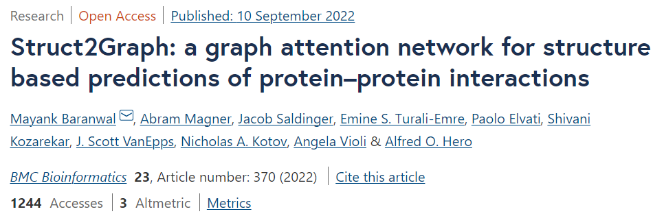 该研究以「Struct2Graph: a graph attention network for structure based predictions of protein–protein interactions」为题,于 2022 年 9 月 10 日发布于《BMC Bioinformatics》。