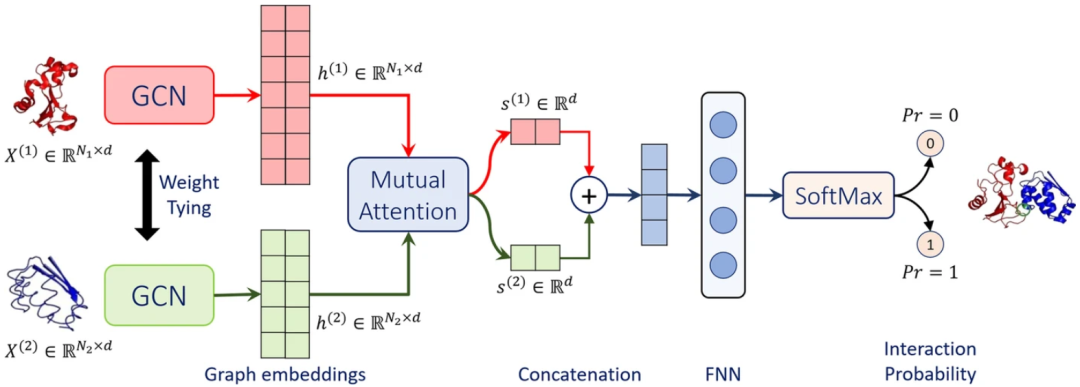 该团队开发了一个相互图注意力网络和一个相应的计算工具 Struct2Graph,以仅从 3D 结构信息预测 PPI。Struct2Graph 没有使用几个蛋白质特定的特征,例如疏水性、溶剂可及表面积(SASA)、电荷、ngram 频率等,而是使用仅使用原子的 3D 位置获得的基于图形的蛋白质球表示。这种基于图的解释允许神经信息传递,以实现蛋白质的有效表示学习。