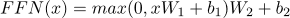 是参数矩阵。 然后使用具有两个线性层和 ReLU 激活功能的前馈网络(FFN)。 设