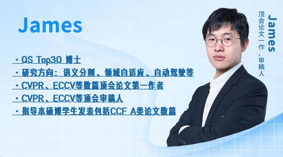 10月17日,CV顶会一作、审稿人James老师将与大家分享如何高效做科研,教会你高效获取idea~