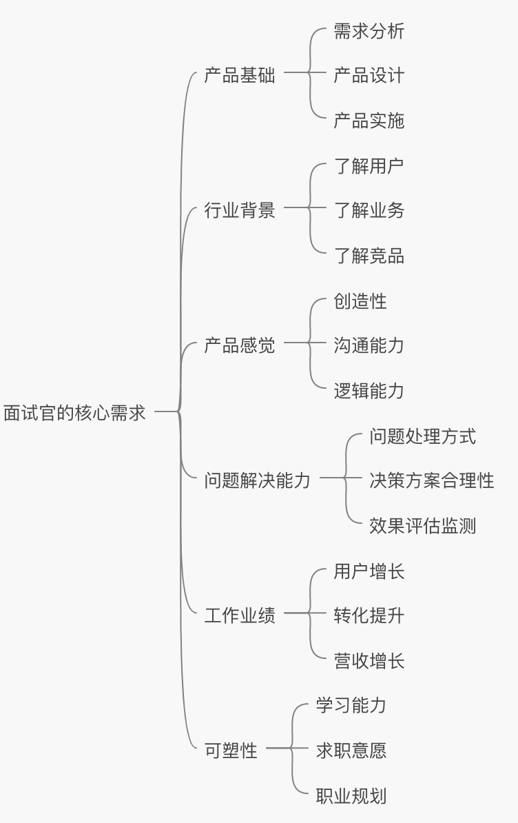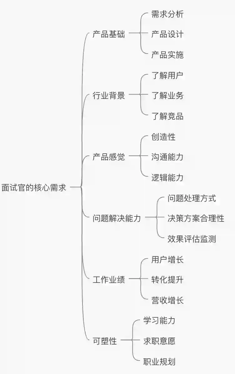 我们可以采取以终为始的分析思路:面试官的最终诉求是什么呢?那就是找到一名:与岗位需求相匹配+有产品基础+有一定行业背景+具备产品感觉+配备问题解决能力+有可塑性的+优秀的产品经理。
