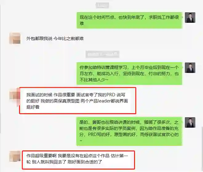 △学员反馈:要不是没有这个作品集,可能并不能争取到面试的机会